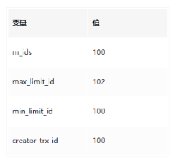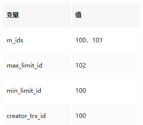 min_limit_id(100)=<trx_id(101)<max_limit_id(102);